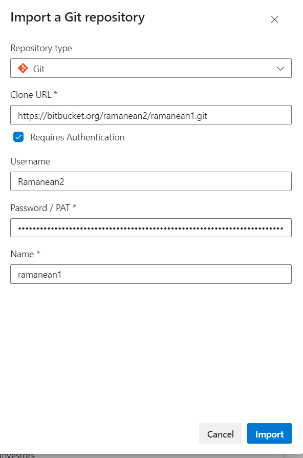 Azure DevOps allows you to import to repositories from any external repository into Azure Repos provided you have the required authentication to import the repo from that external website. In the below steps let us see how to import repository from BitBucket into Azure DevOps